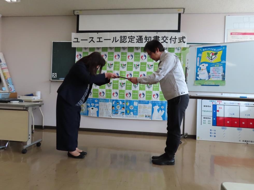 ユースエール認定企業として認定いただきました